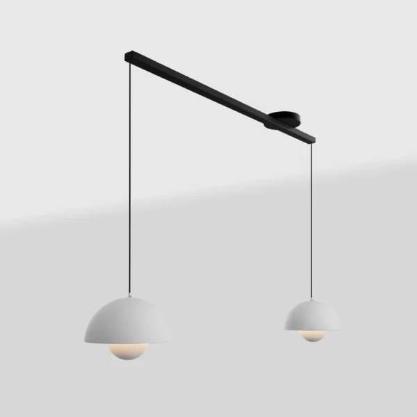 Your Lightswing® is suitable for one or two pendant lights. The 90 cm version can carry up to 2.5 kg per pendant. The Lightswing® Single is designed for one pendant, and the Lightswing® Twin is suitable for two pendants.